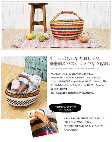 リビング、トイレ、玄関先などどんなシーンでも活躍する ナチュラルなバスケット。